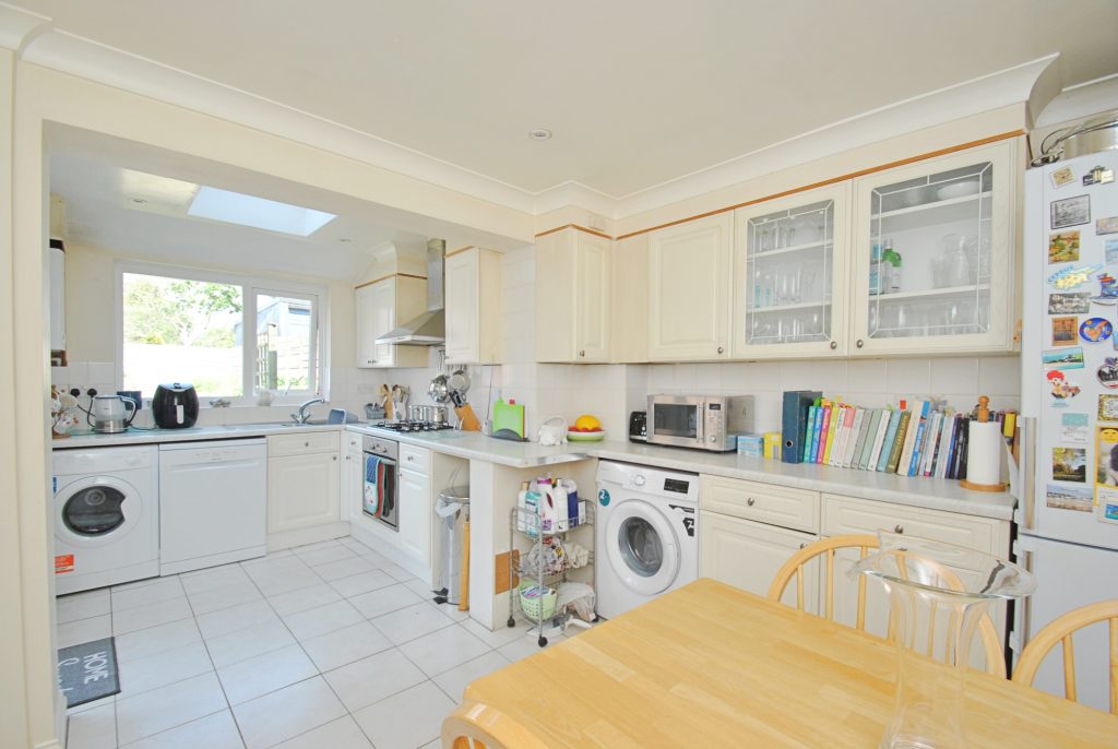 The extended kitchen breakfast room also overlooks the rear garden and offers a good range of base and eye level units with a fitted oven and hob and space for additional appliances.