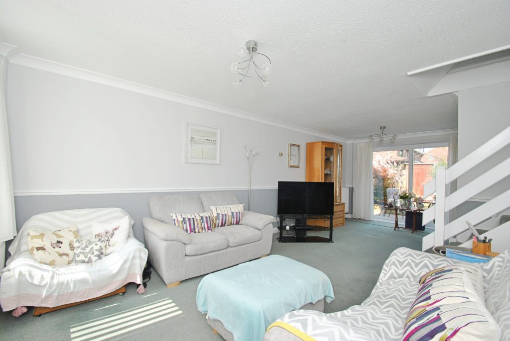 An entrance porch leads into the open plan sitting dining room where stairs rise to the first floor and there are sliding patio doors to the garden.