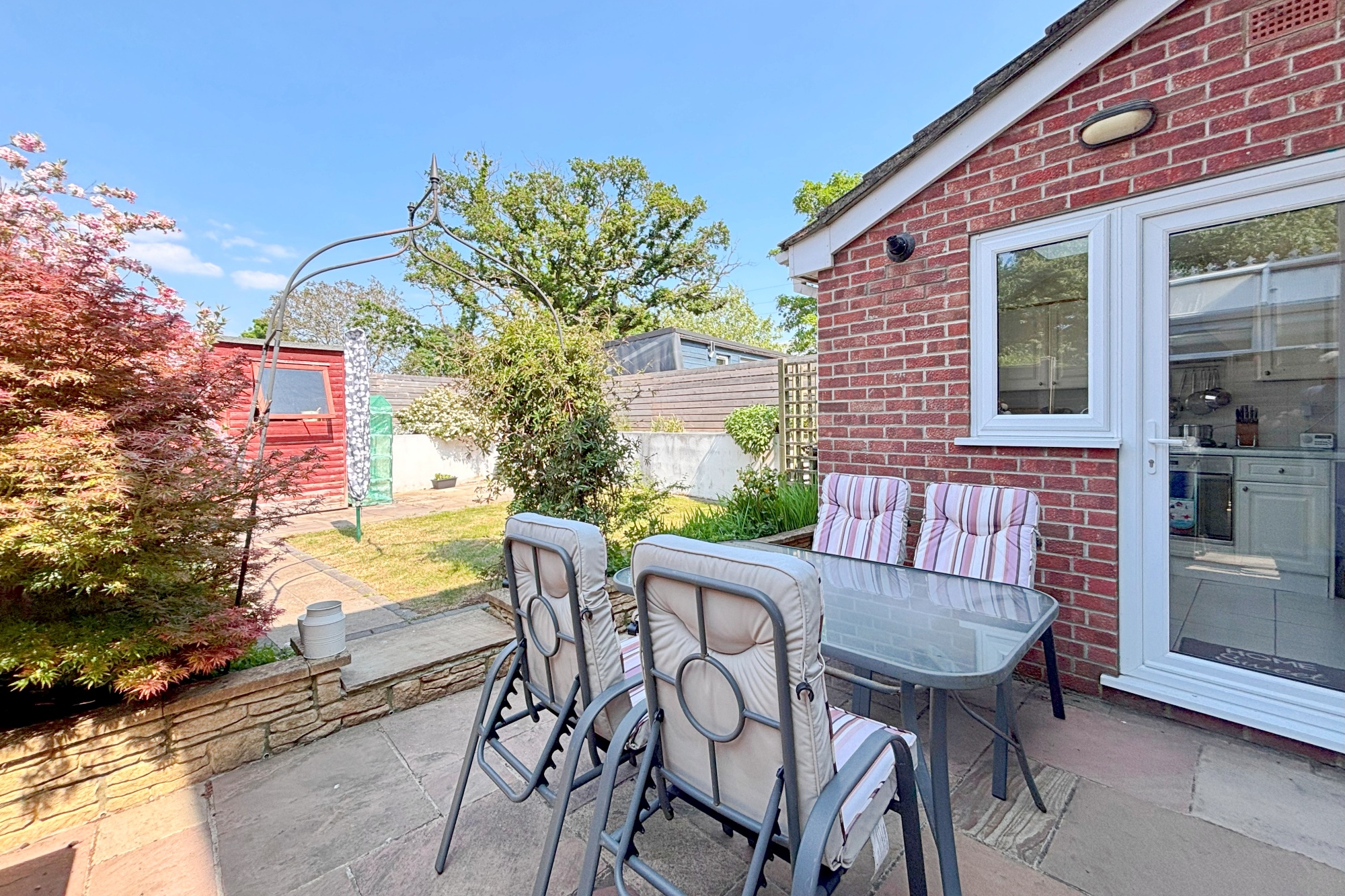 The rear garden is a feature of the property with a paved patio terrace along the rear of the house and there is a lawn garden with a further patio, shed and planted borders bound by timber fencing.