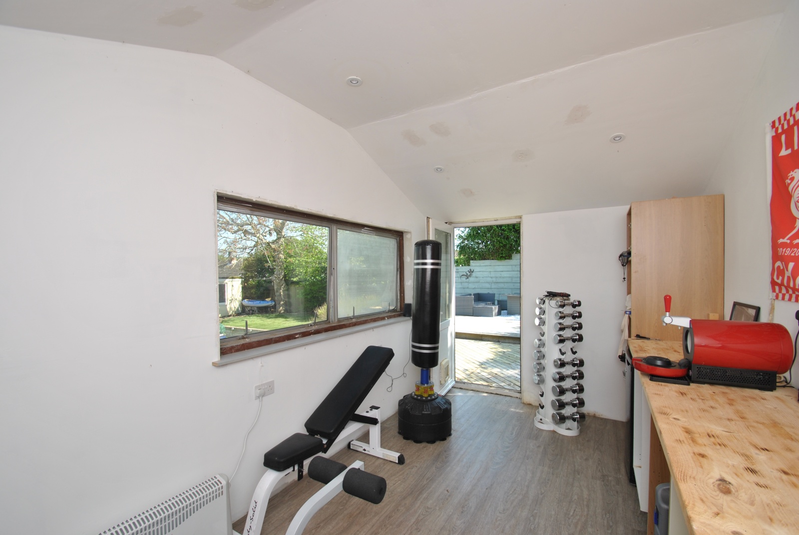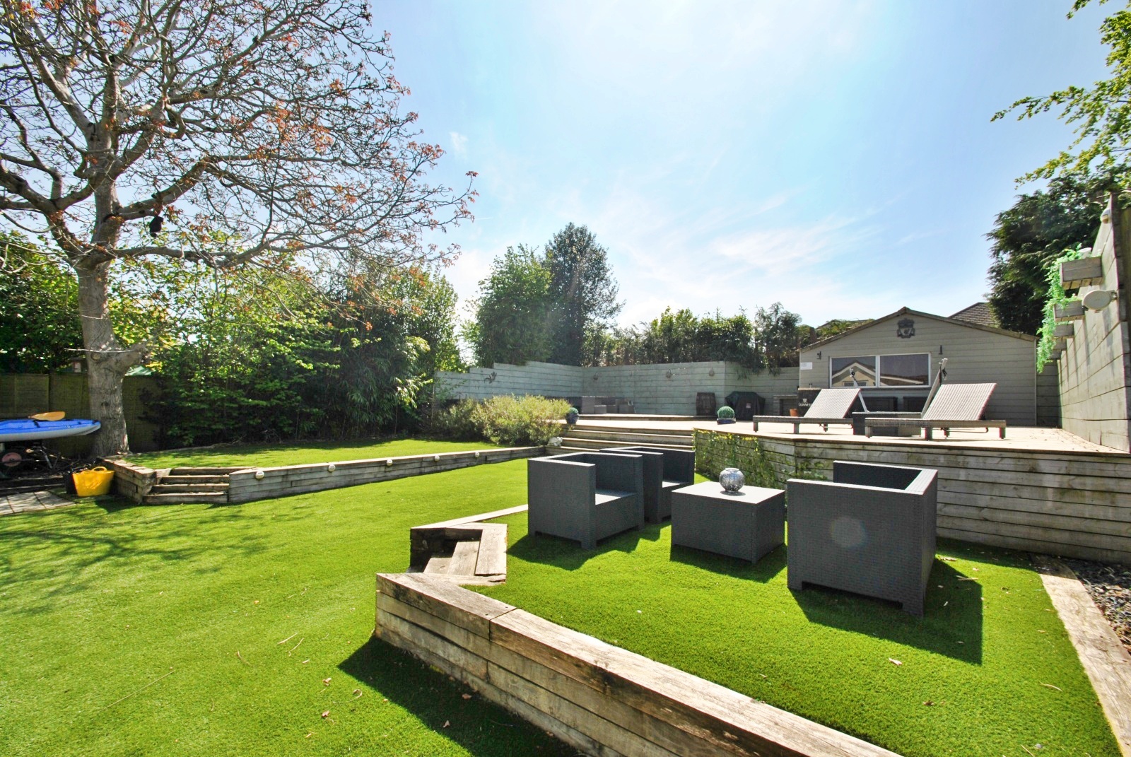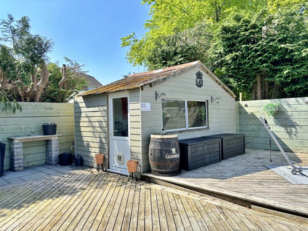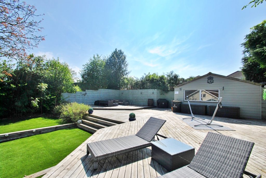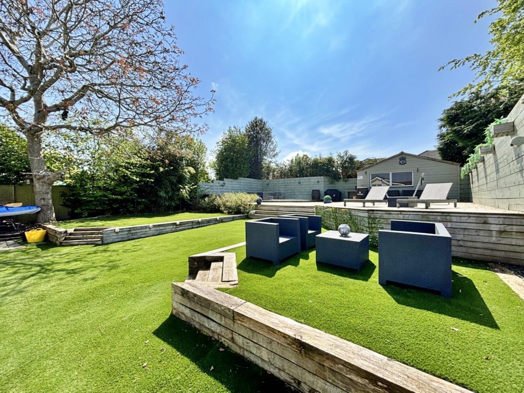 The rear garden has a paved patio terrace along the rear of the property. The garden has been landscaped with low maintenance in mind. The lower terraces are laid to artificial grass and there is a large upper decked terrace with a garden cabin, ideal for a summer house, gym or home office.