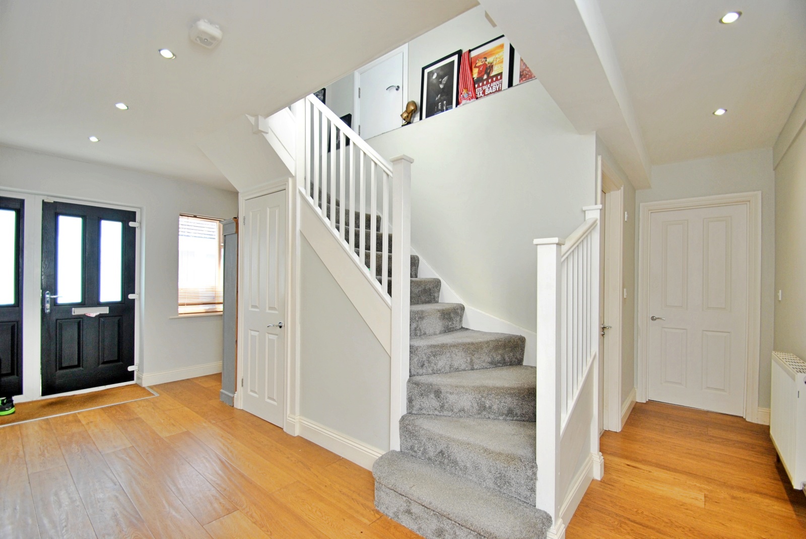 The driveway is block paved, providing parking for several vehicles and access to the attached oversize garage. The front garden is laid to shingle planted borders. The rear garden can be accessed via a side gated path.