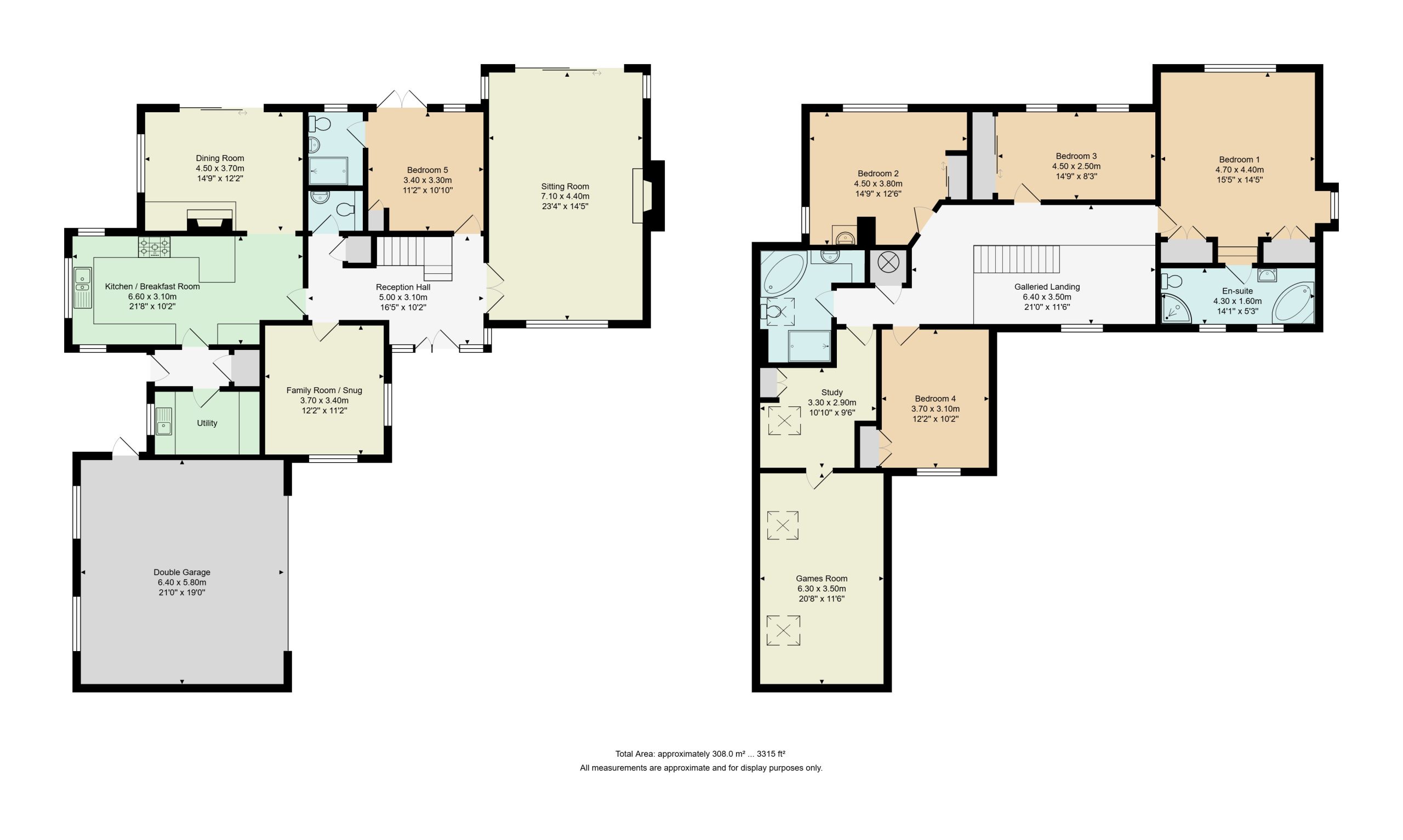 Also on the 1st floor is the study which connects to the adjacent games room, either of these rooms could be arranged as additional bedrooms.