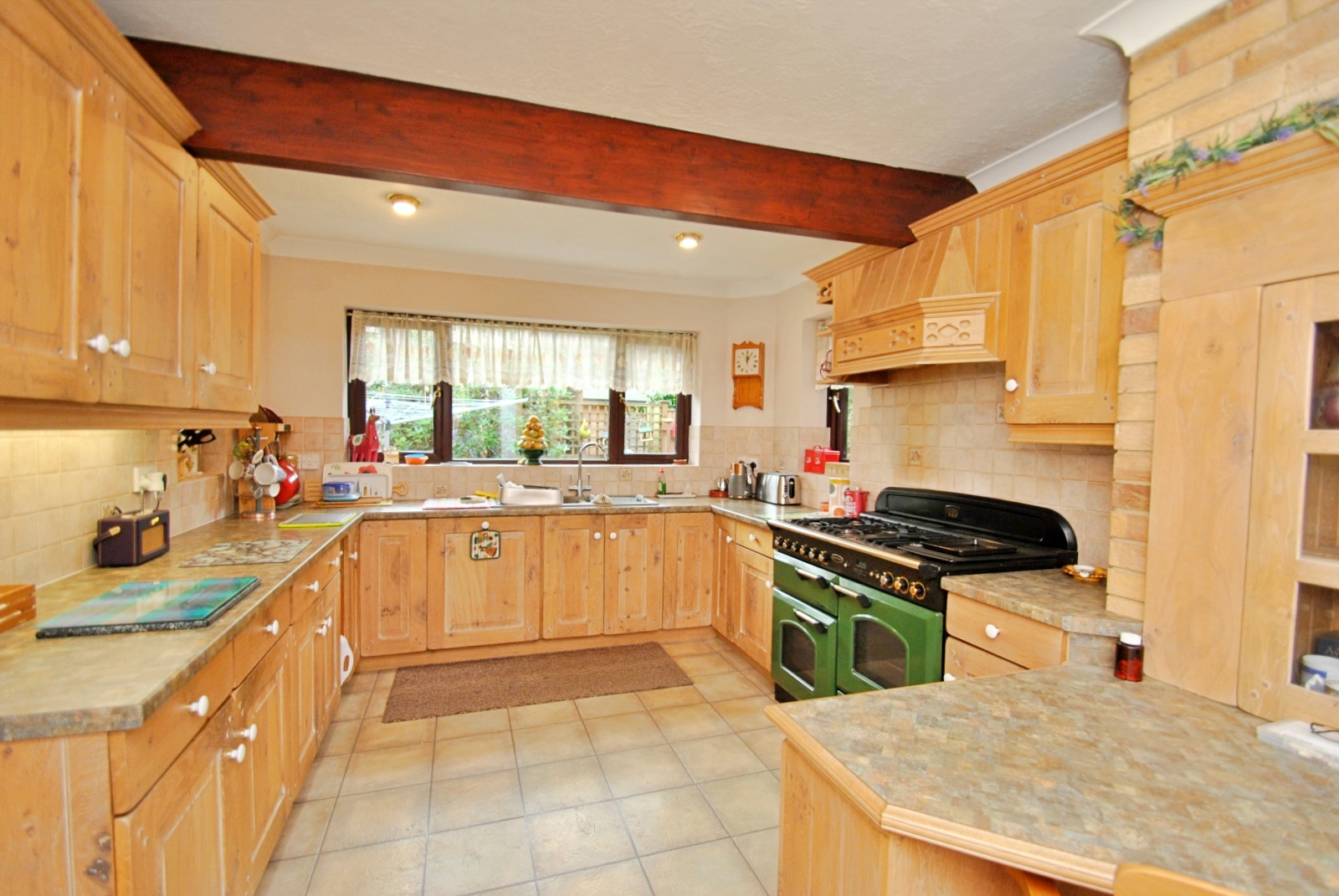 The traditional kitchen breakfast room offers a comprehensive range of base and eye level units with a matching dresser, breakfast bar plus a fitted dishwasher. There is a range cooker and double fridge freezer available subject to negotiation. A brick archway connects the separate dining room which also has sliding patio doors to the garden and a further fireplace.