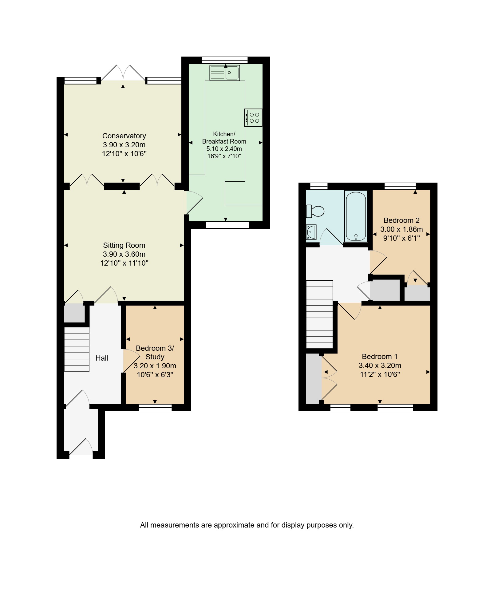 The accommodation briefly comprises an entrance porch that leads into the hallway where stairs rise to the first floor. There is a ground floor study/third bedroom.