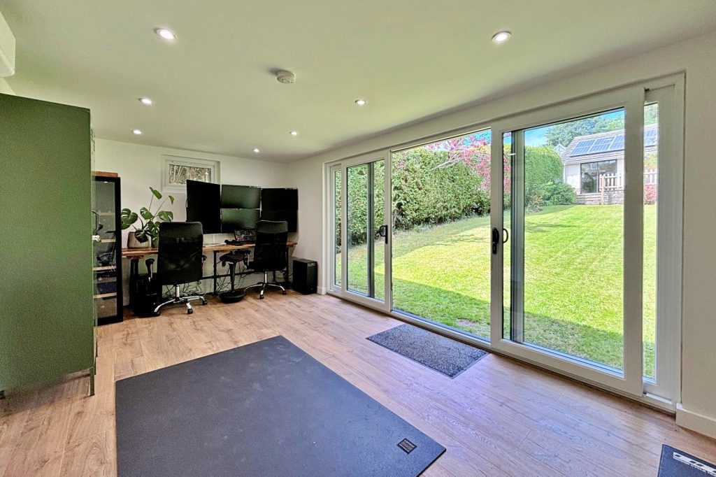 The recently installed garden lodge is of high quality with UPVC double glazed windows and sliding doors. The insulated lodge is ideal for a home office/gym/garden room and has both internal and external lighting together with heating/air conditioning.