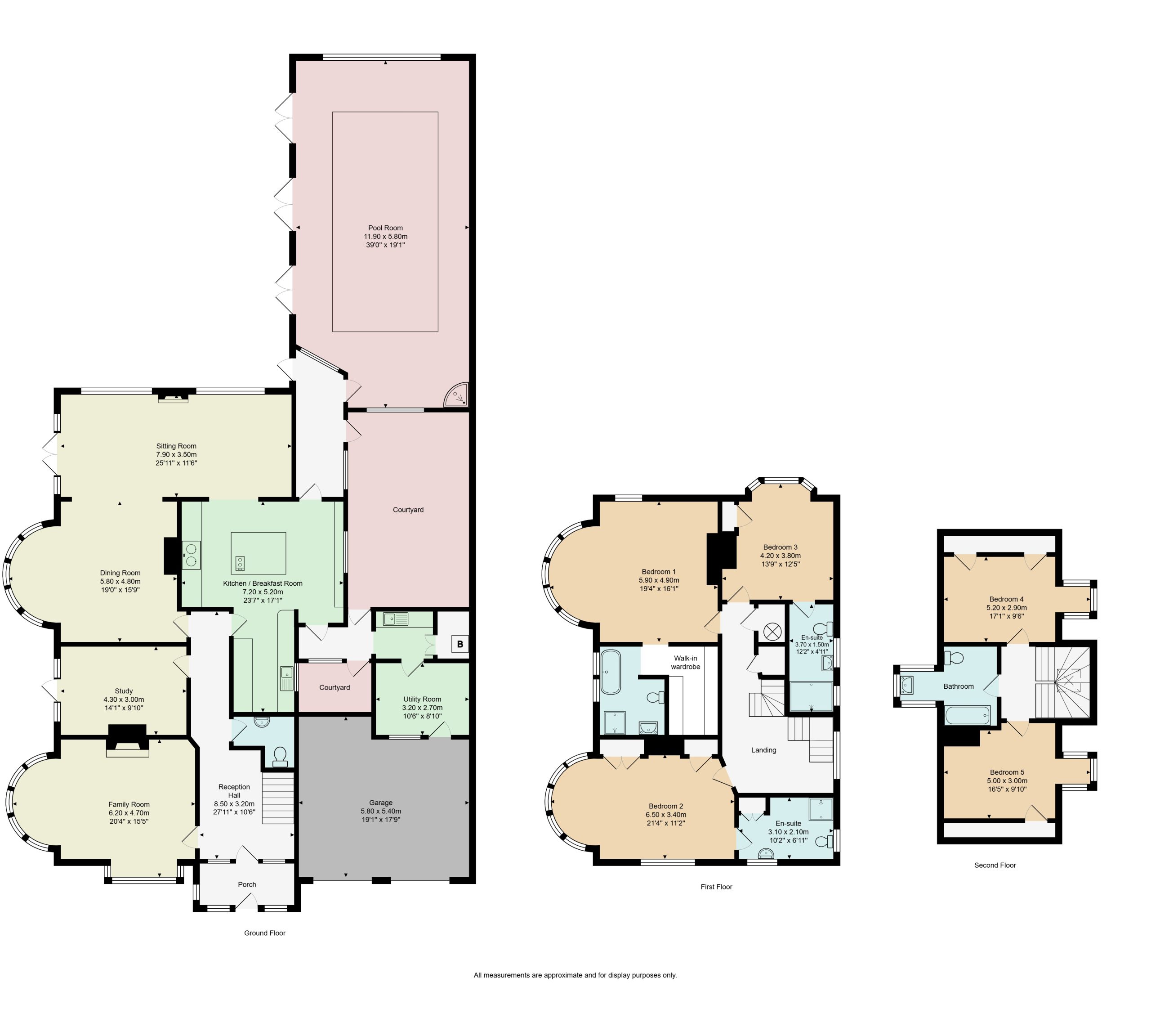 On the first-floor landing is a feature stained-glass window. On this floor there are three en-suite bedrooms, bedroom one also includes a walk-in wardrobe.