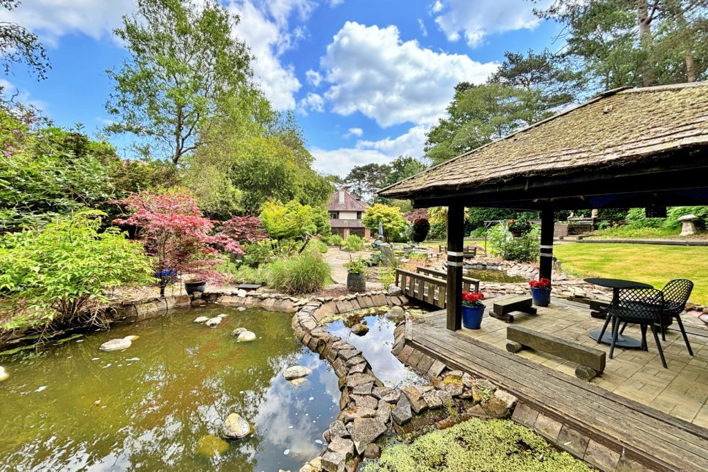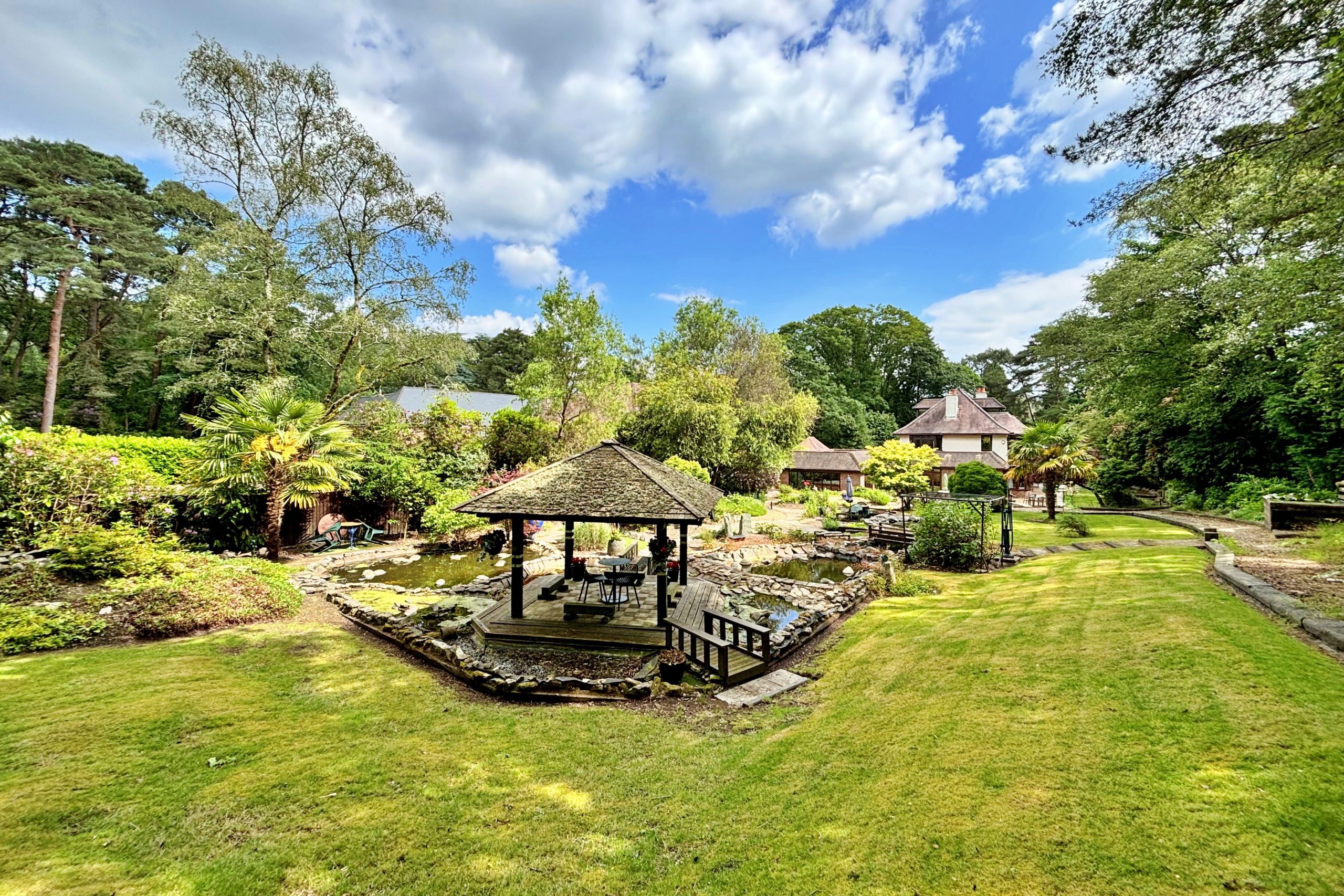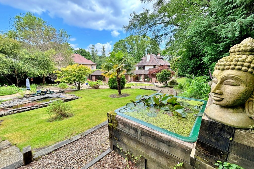 The rear gardens are a particular feature with a large lawned area, along the rear of the house is a paved patio. Moving up the garden are a range of mature planted borders and a number of connected ponds with a pergola seating area. It is all bound by mature trees and shrub borders.