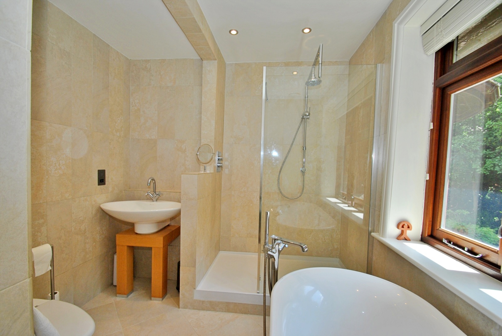 There are two enclosed courtyards providing secluded sitting areas. The indoor pool room houses the heated swimming pool along with a shower and french doors lead out to the garden.