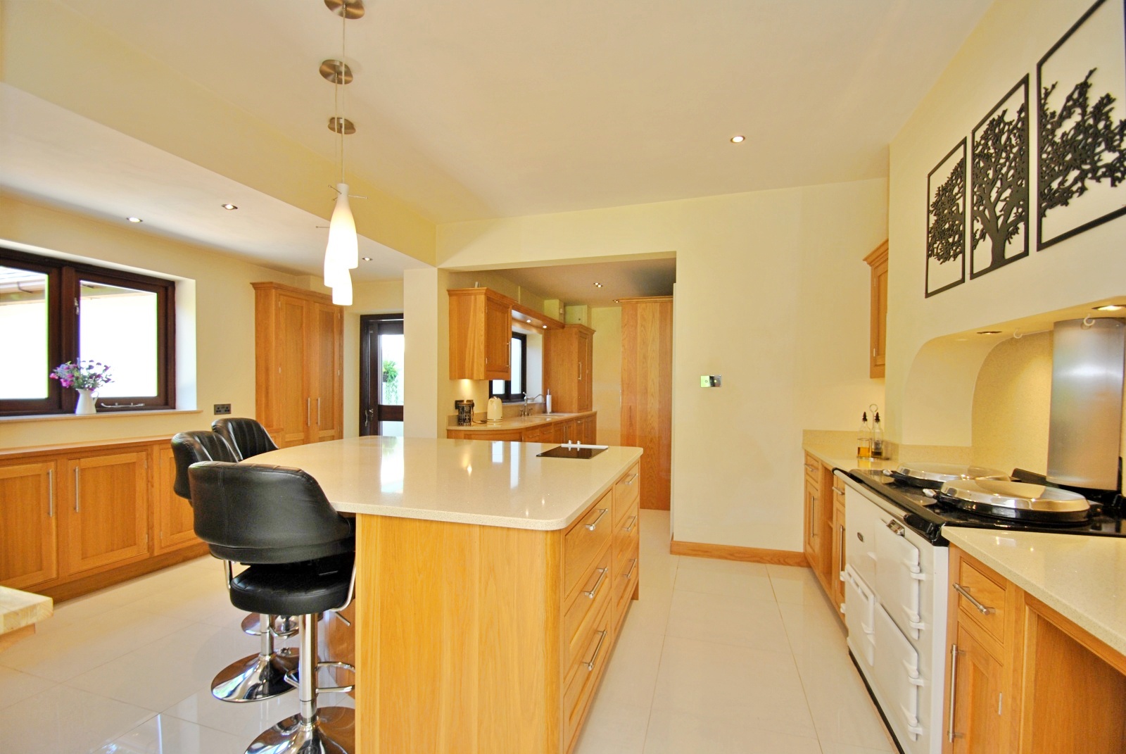 The kitchen includes a comprehensive range of base and eye level oak finished units including a large breakfast island with stone tops. There is an electric Aga along with a two ring hob, dishwasher, double oven, fridge/freezer and wine chiller. The separate boot room and utility provide space for additional appliances.