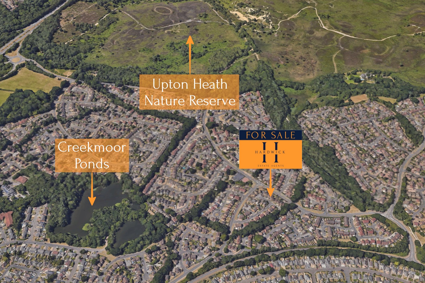 The property is located at the end of a quiet cul-de-sac in the popular residential area of Creekmoor. There are a number of shops and amenities in Creekmoor together with easy access to Upton Heath Nature Reserve, the Castleman Trailway and Upton House Country Park. It lies between the larger towns of Poole and Broadstone.