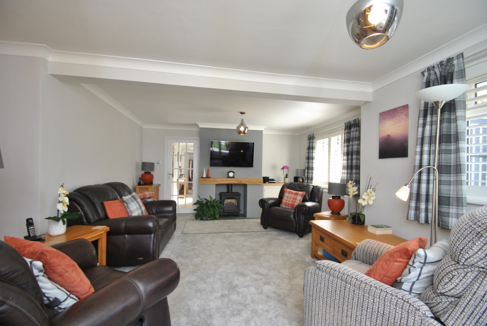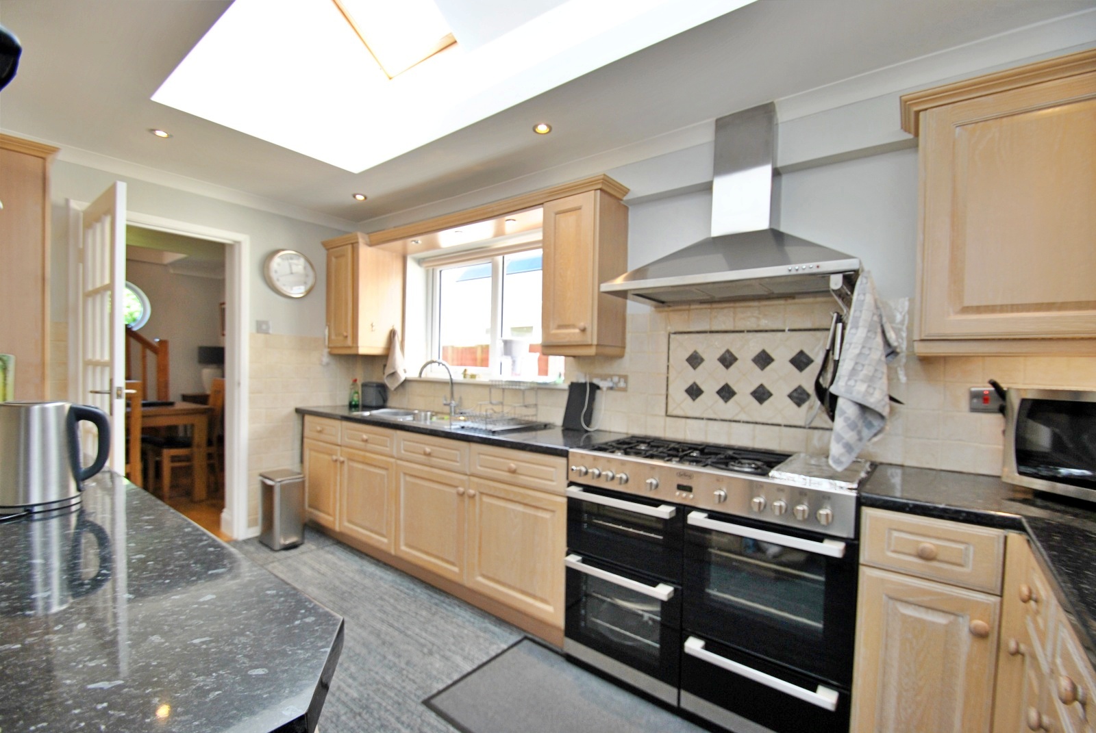 The kitchen offers a good range of base and eye level units with fitted appliances including a fridge and freezer, washing machine and range cooker.