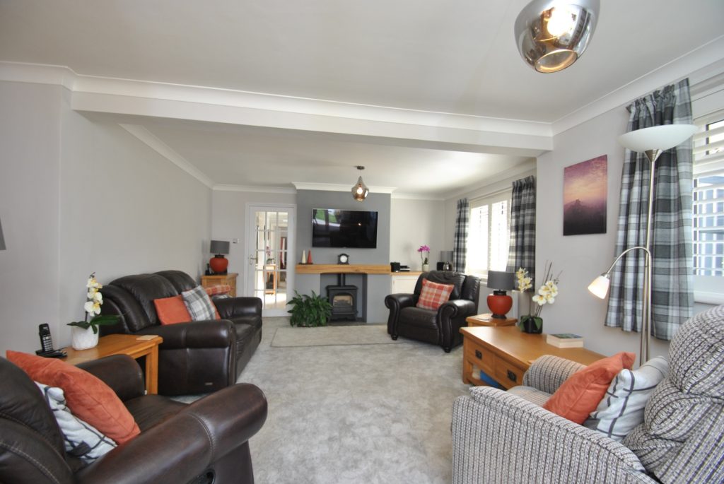 The property is a beautifully presented and well-maintained detached chalet style bungalow with all the principal accommodation on the ground floor, and just one bedroom on the 1st floor. It offers surprisingly spacious accommodation, all set on a generous plot with ample parking for several vehicles together with a detached double garage and a secluded westerly facing garden.