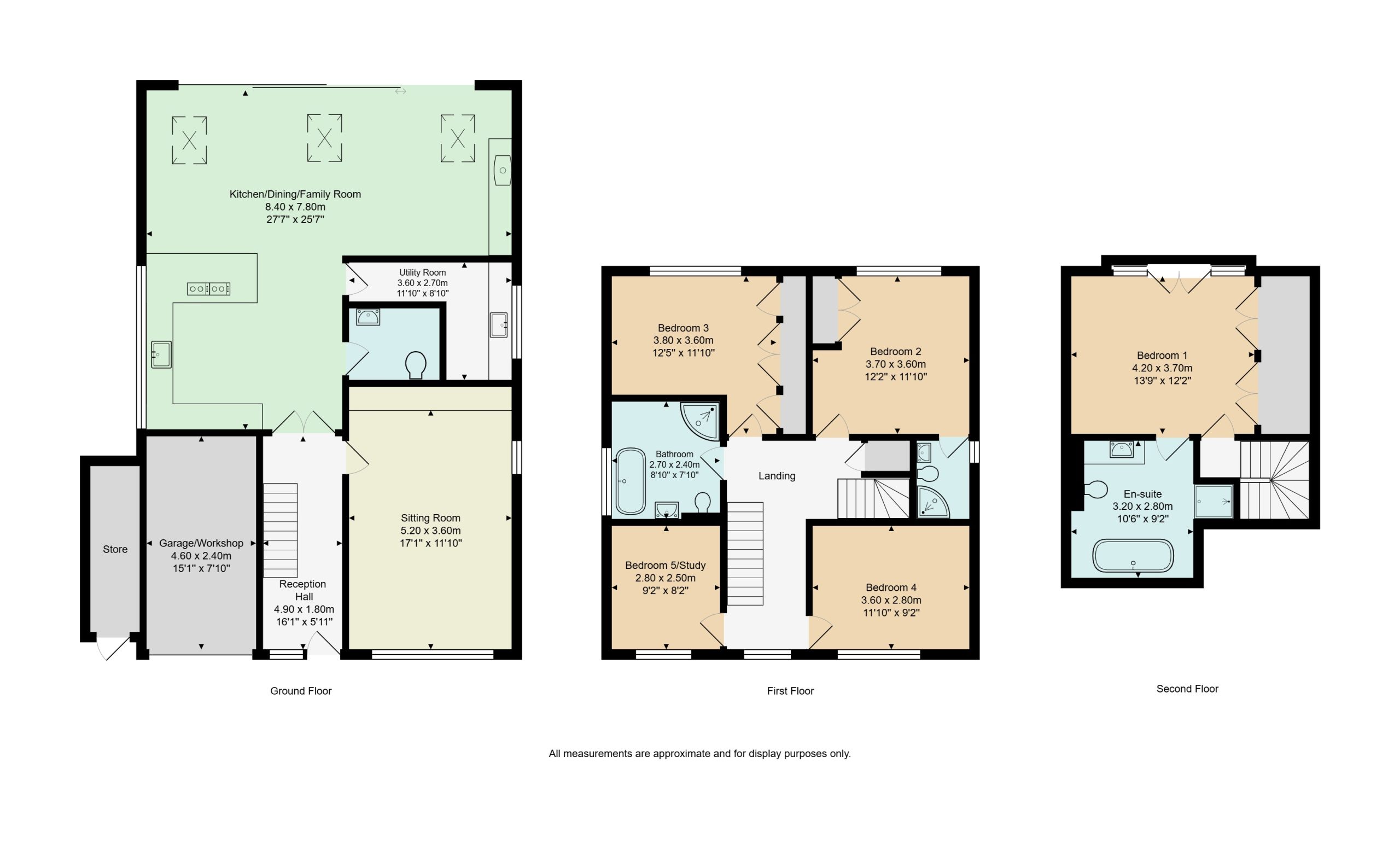 On the 1st floor there are 4 well-proportioned bedrooms. Bedroom 2 has fitted wardrobes together with an en-suite shower room. Bedroom 3 also includes fitted wardrobes.