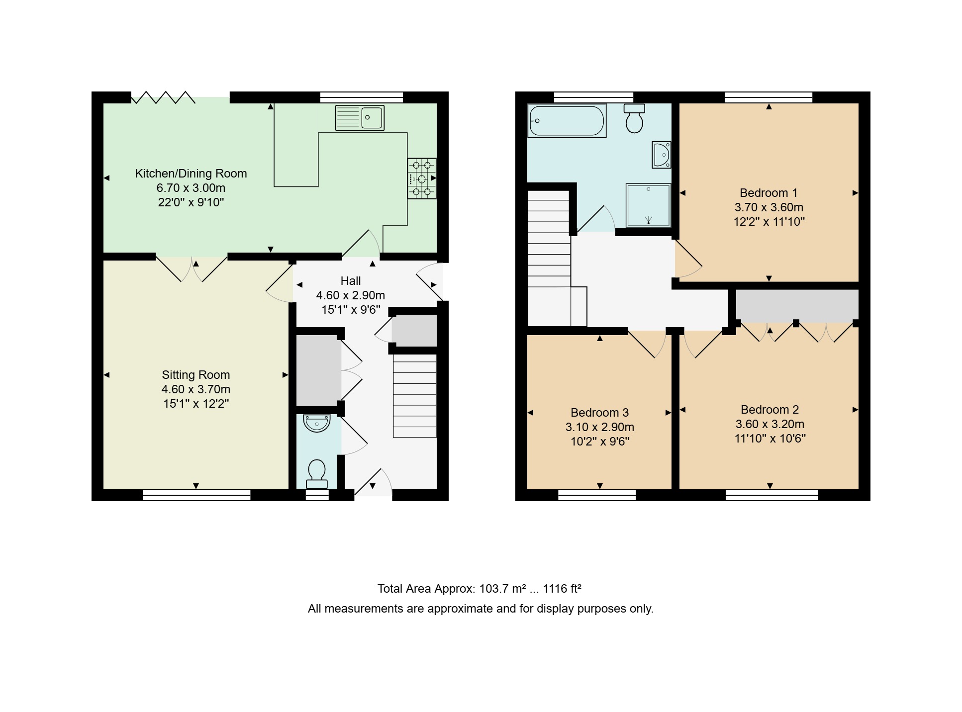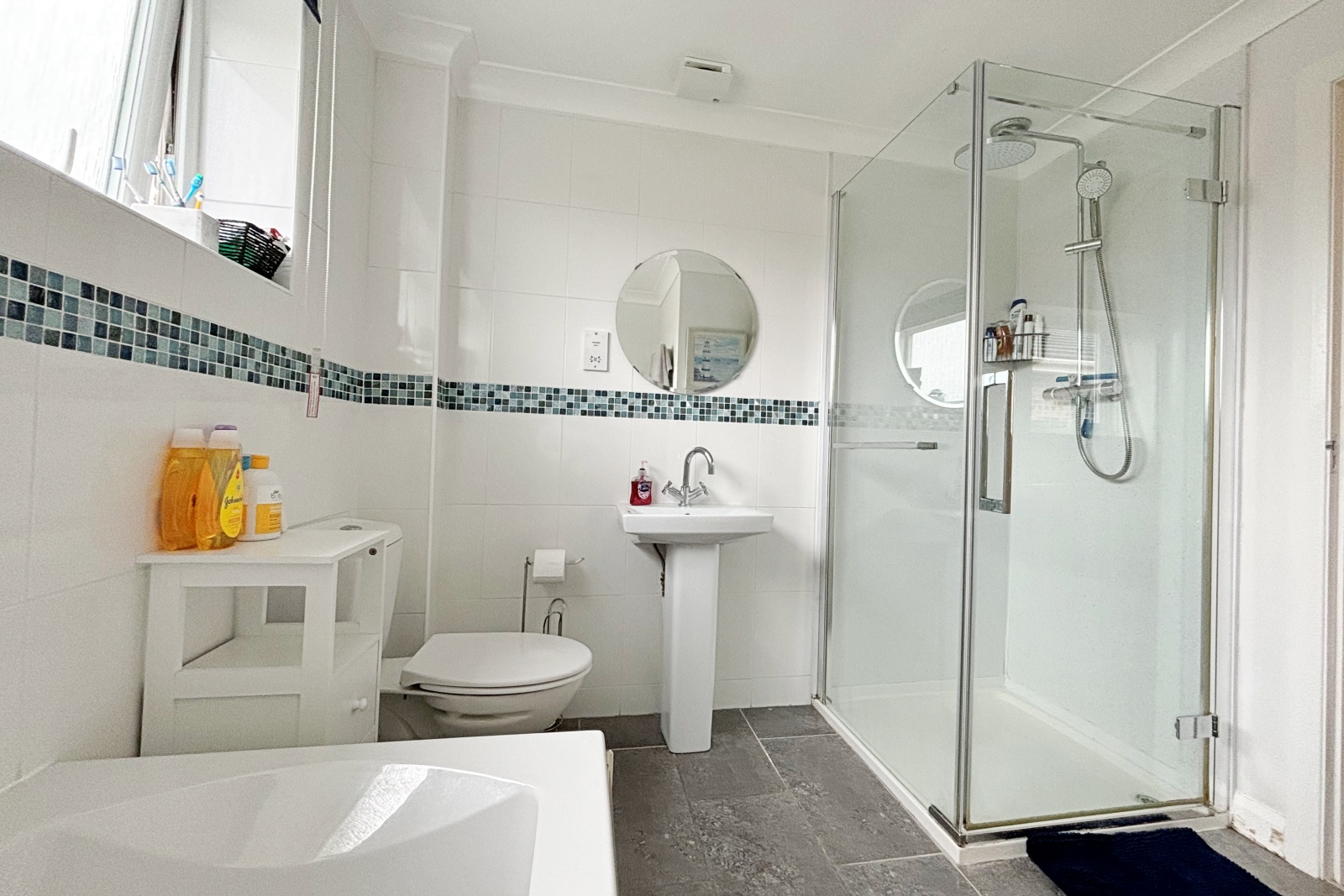 Upstairs there are three well proportioned double bedrooms. The bathroom includes a white four piece suite with a bath, separate shower, WC and wash basin.