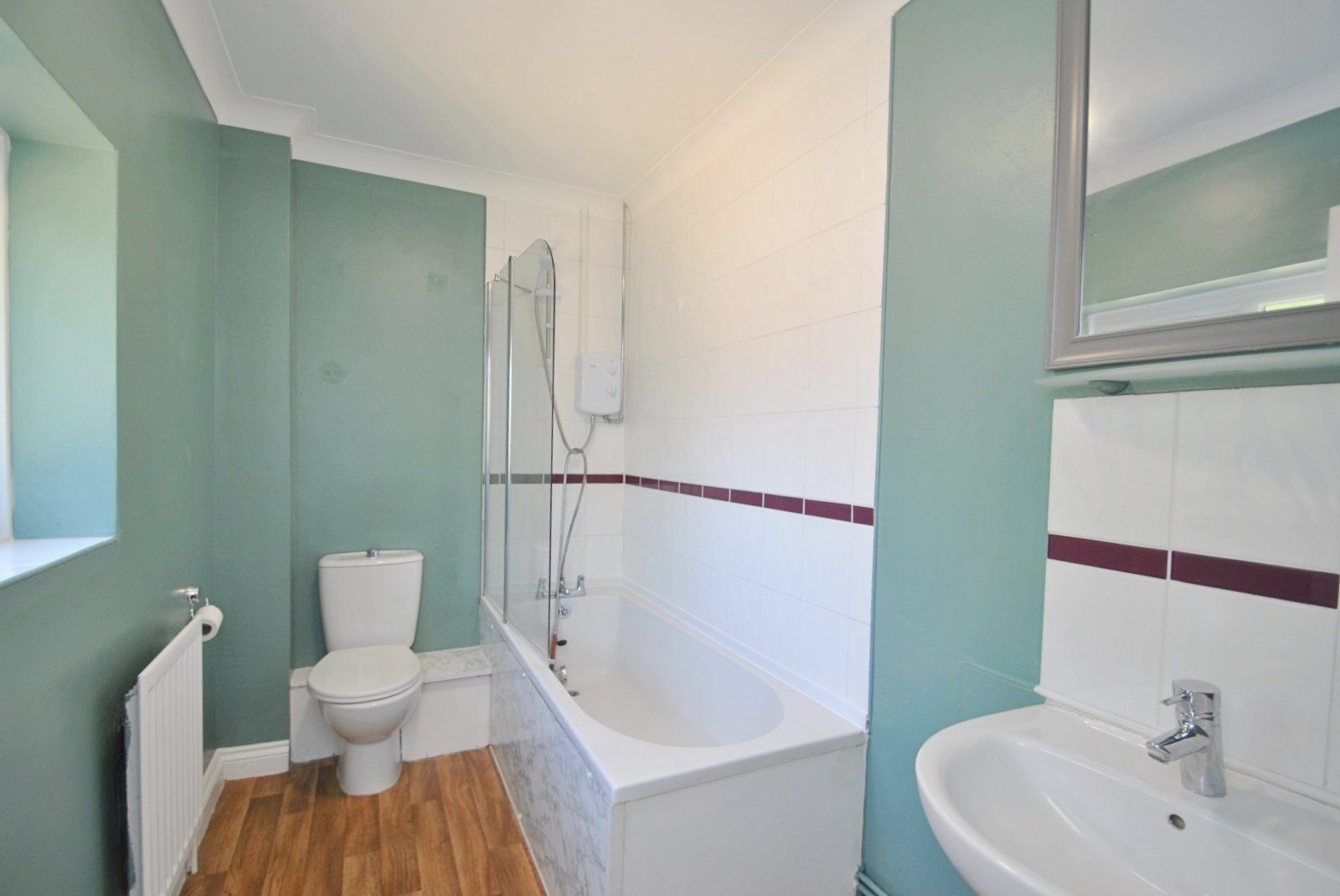 Upstairs there are three bedrooms. Bedroom one has fitted wardrobes, whilst in bedroom 3 is the built-in airing cupboard. The bathroom has a modern white 3 piece suite including a bath with shower over.