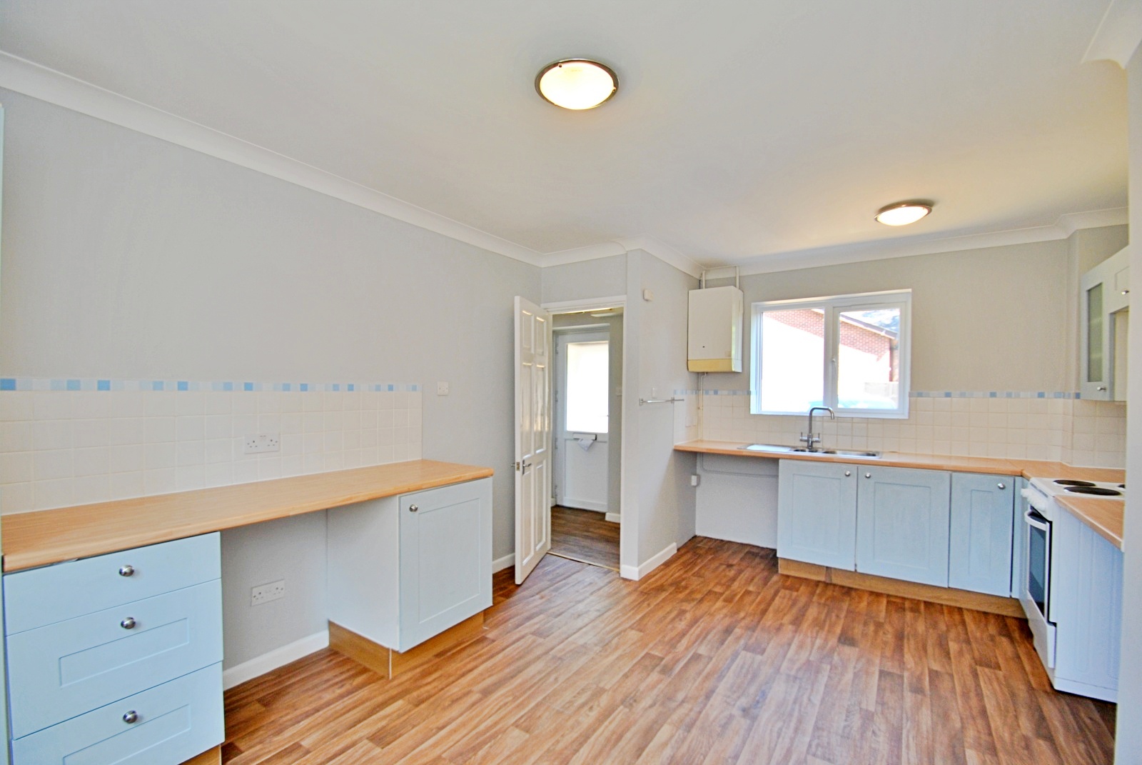 The kitchen offers a range of base and eye level units, a cooker and tiled splash backs. There is space and plumbing for various other appliances.